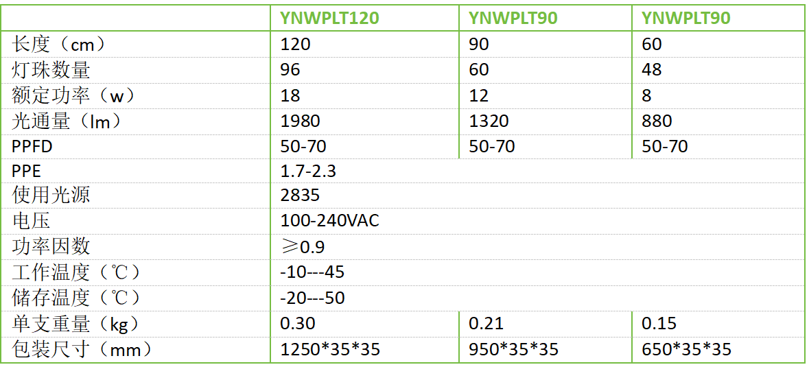 防水植物灯管标准产品为T8规格,可根据不同种植场景匹配T10/T15/T20规格